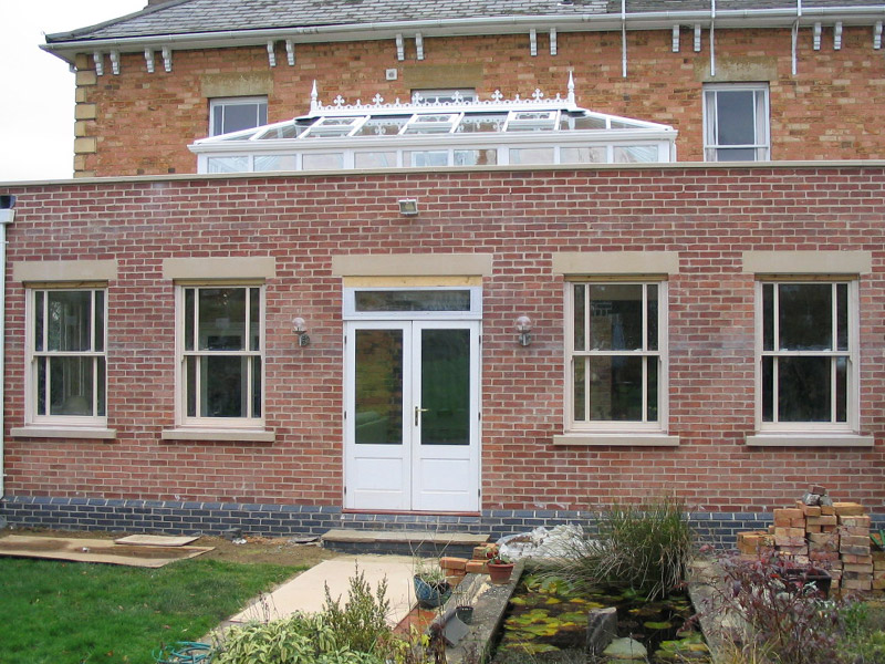 This single storey extension designed in-house by Baxter & King incorporated alterations to the original kitchen enlarging the usable area and providing an excellent living area. The original brickwork detail was retained to the existing house, traditional wooden sliding sash windows with a pre-finished paint applied, a large roof lantern was installed incorporating self cleaning glass and rain sensors. The floor was covered with a natural Travertine marble. The flat roof is covered with a “Polyroof System” and is guaranteed for 20 years.