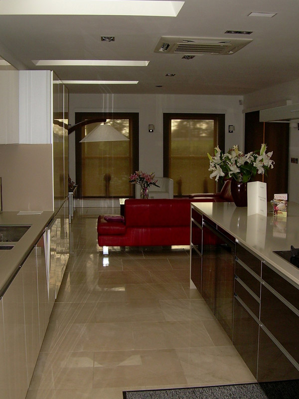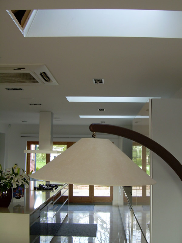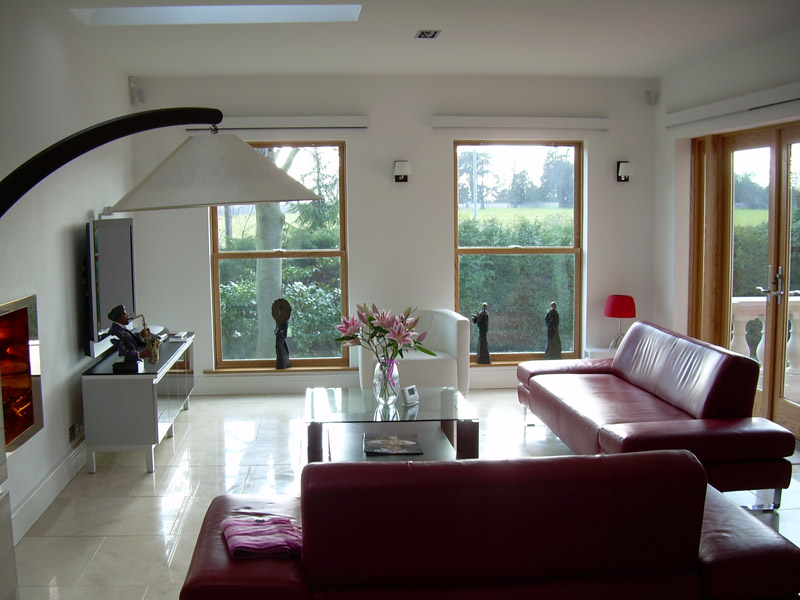 This award winning extension was designed and specified in-house. We worked alongside the client to produce this impressive project. The extension was constructed on piled foundations and constructed from bricks sourced and imported from Holland. Underfloor heating was used throughout, Oak windows with electronic blinds linked to the programmable lighting system were installed. The raised patio area steps and pond area were balustraded with stone locally sourced and incorporated external mood lighting.