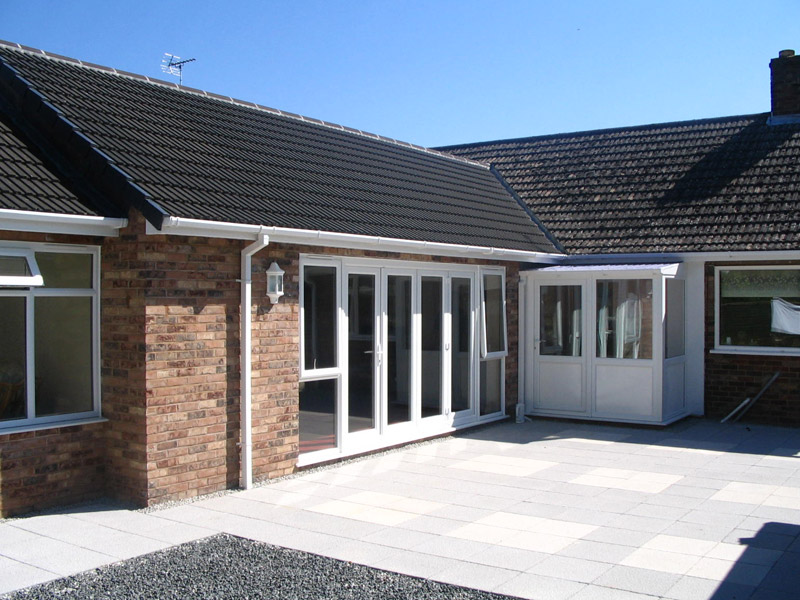 This extension was designed in-house and provided a large lounge and sunroom.Fully retractable concertina doors were installed achieving the inside/outside living area.